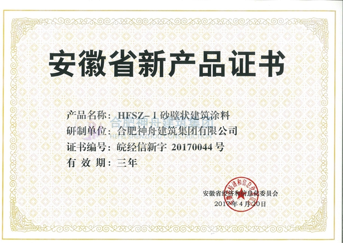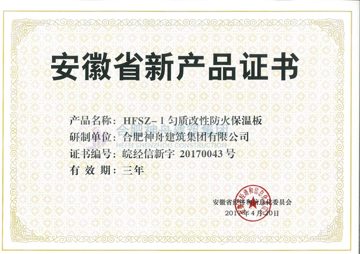 “竣捷”牌勻質(zhì)改性防火保溫板、耐堿玻璃纖維網(wǎng)格布、真石漆通過安徽省經(jīng)濟和信息化委員會的評審,榮獲了安徽省新產(chǎn)品榮譽證書